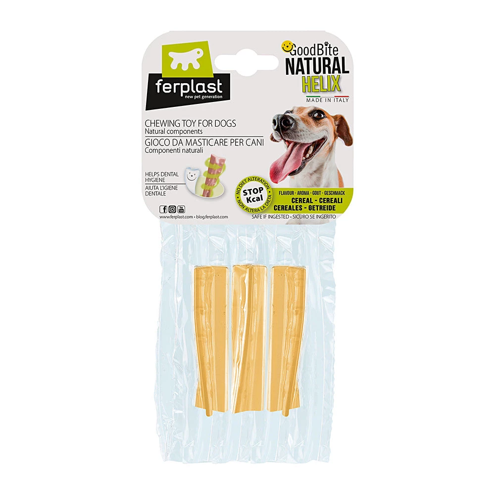 Perfekt für die Zahnhygiene Ihres vierbeinigen Freundes! Die Produktserie Goodbite Natural von Ferplast bietet nun ein neues Kauspielzeug für Hunde an: Goodbite Natural Helix. Sie sind aus natürlichen Komponenten hergestellt, ungiftig und biologisch abbaubar. Diese Kauspielzeuge verändern die Ernährung Ihres Hundes nicht. Neben der entspannenden Wirkung des Kauens stärken diese Kauspielzeuge die Zähne Ihres Hundes und halten sie sauber. Sie sind absolut ungefährlich wenn sie verschluckt werden. Ihre besondere Spiralform wurde entwickelt, um die Zahnhygiene zu fördern.