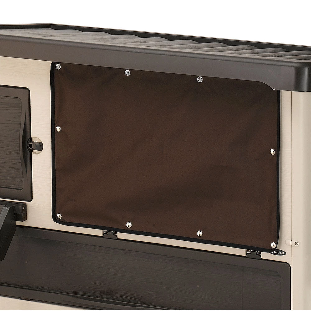 Dies ist ein Hühnerstall aus stabilem Kunststoff, ideal für den Außenbereich. Happy Farm 120 ist auf einer einzigen Etage komplett mit Zubehör wie einer Sitzstange aus Holz und einem extra Haus für Hennen zum Eier legen. Seitlich und vorne hat es zu öffnende Türen, um die Hühner hinauszulassen. Hierfür wird eine Kunststoff-Leiter mitgeliefert, die an der Eingangstür angebracht werden kann. Die Türen vereinfachen auch die Reinigung. Das zu öffnende Dach wurde entwickelt, um bequem die Eier entnehmen zu können oder die Hühner mit Futter und Wasser zu versorgen. Die Kunststoff-Auszugswanne hat eine spezielle Verriegelung und erlaubt Ihnen, problemlos Kot und Essensreste aus dem Stall zu entfernen. Zusätzlich können Sie einen Schutzvorhang vor dem Gitter auf der Vorderseite herunterlassen, um Ihren Hühnern maximale Ruhe zu gönnen.