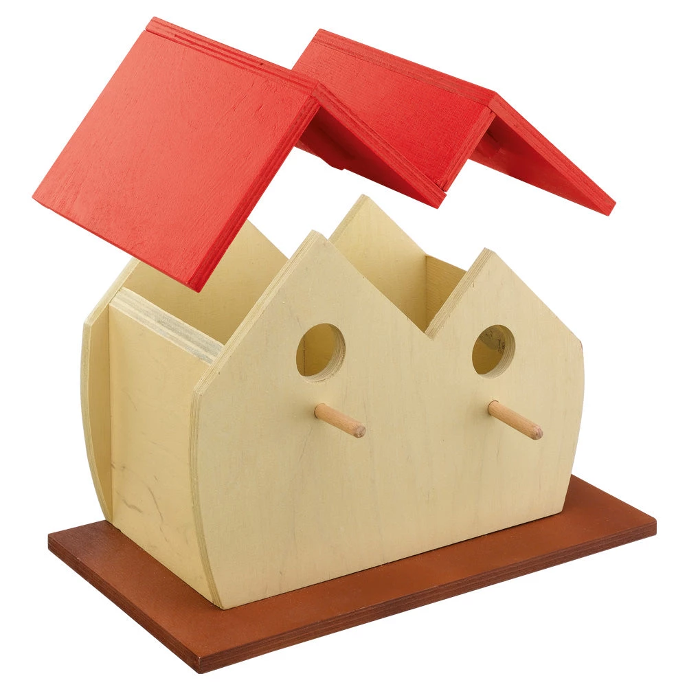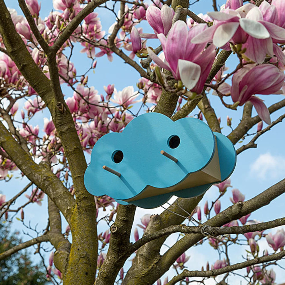 Wenn Sie sich gemeinsam mit Ihren Kindern um Wildvögel kümmern und ihnen Nahrung und Unterkunft bieten möchten, ist ein bunter Nest Fun Nistkasten ideal für Sie. Sie sind aus TREE FRIEND Holz gefertigt, welches aus verantwortungsvoll bewirtschafteten Wäldern kommt. Die Nest Fun Nistkästen haben lustige Formen und sind selbstverständlich nur mit absolut ungiftigen Farben lackiert. Sie verfügen über einen ausreichend großen Innenraum in welchem die Vögel ihre Eier legen und ausbrüten können. Mit dem an der Rückseite angebrachten Metallhaken könen sie problemlos an den Bäumen in Ihrem Garten angebracht werden. Die hellen Farben der Nest Fun sehen besonders hübsch im Laub der Bäume aus.