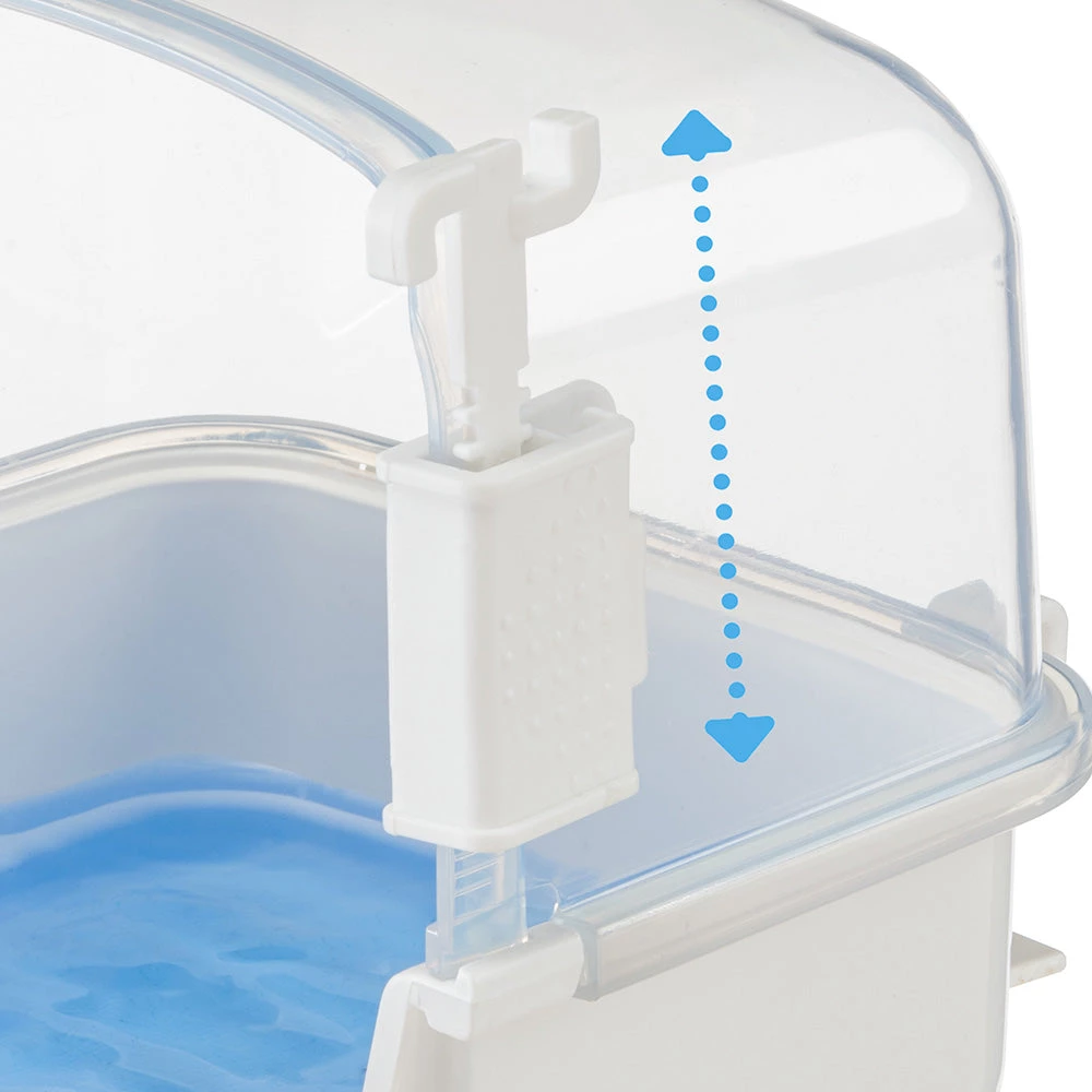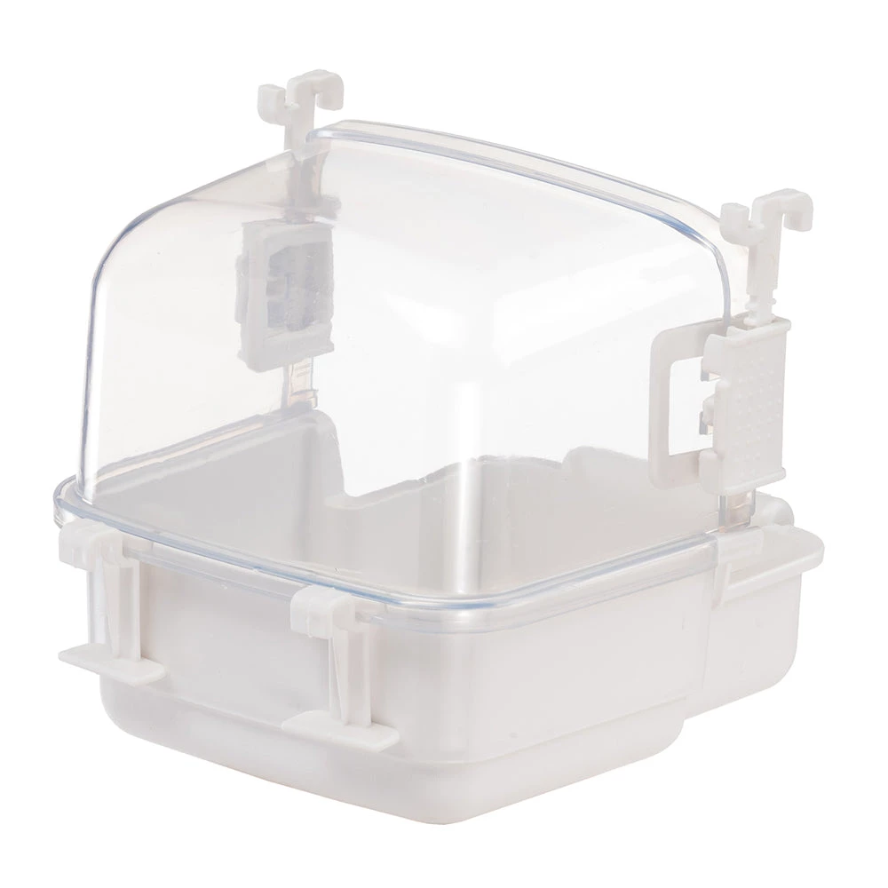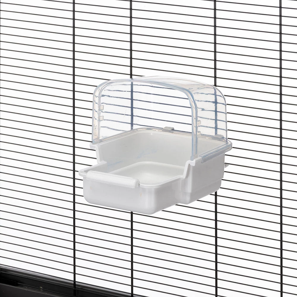 The Rio 2 parakeet bath allows your friends to clean their plumage with confidence and maintain an optimal level of hydration, especially in warmer weather. Safe, made with non-toxic plastics, it has a non-slip bottom and a practical perch for birds. It is also equipped with a transparent protection useful to prevent splashes from escaping. Thanks to the height adjustment system, the baby bath easily adapts to various parakeet cages, it can be mounted as needed inside or outside the habitat.