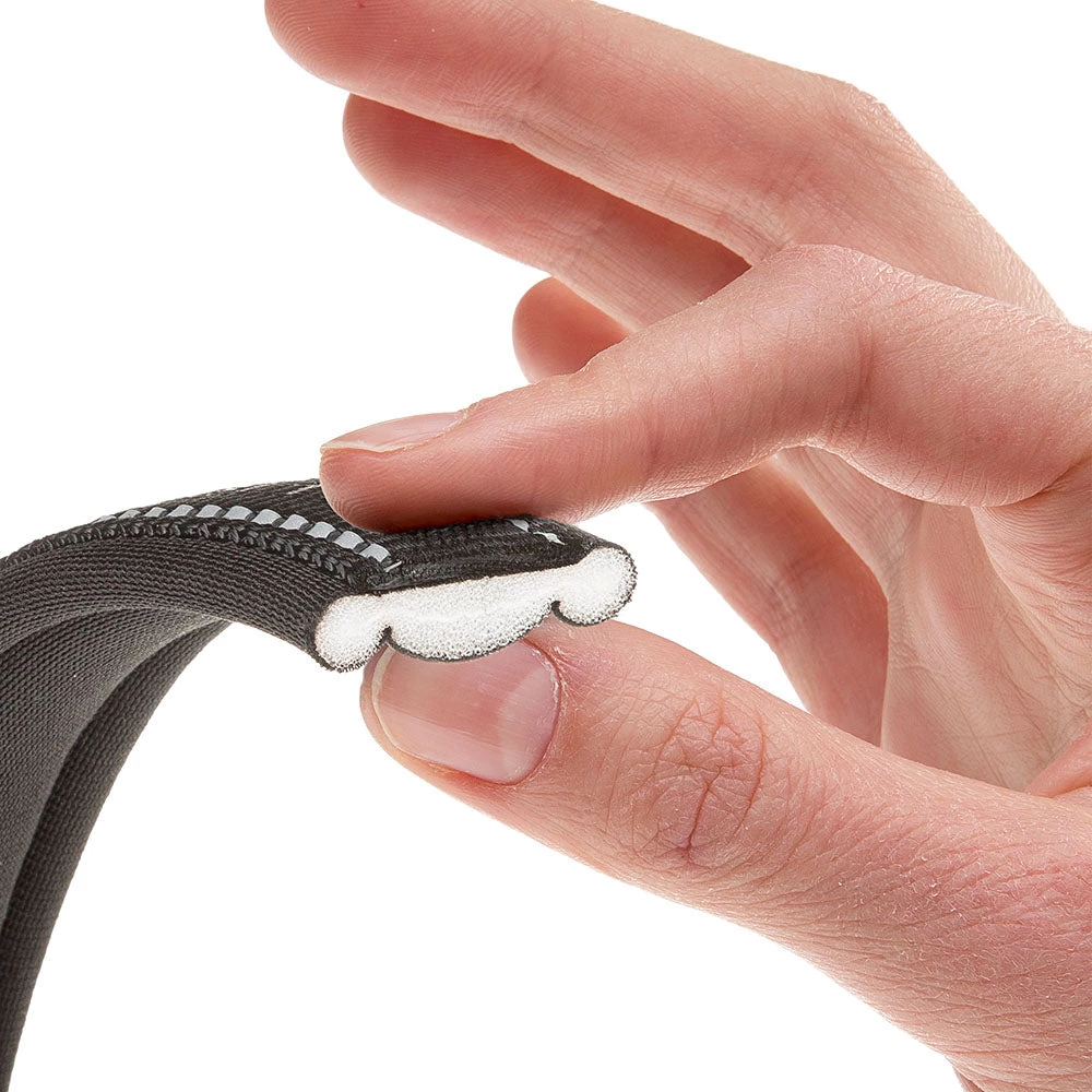 Zur Reihe Sport Dog zählen neben den Norwegergeschirren ebenfalls gefütterte Halsbänder und passende Leinen mit unserem innovativen Automatik-Karabiner für einfaches An- und Ableinen.