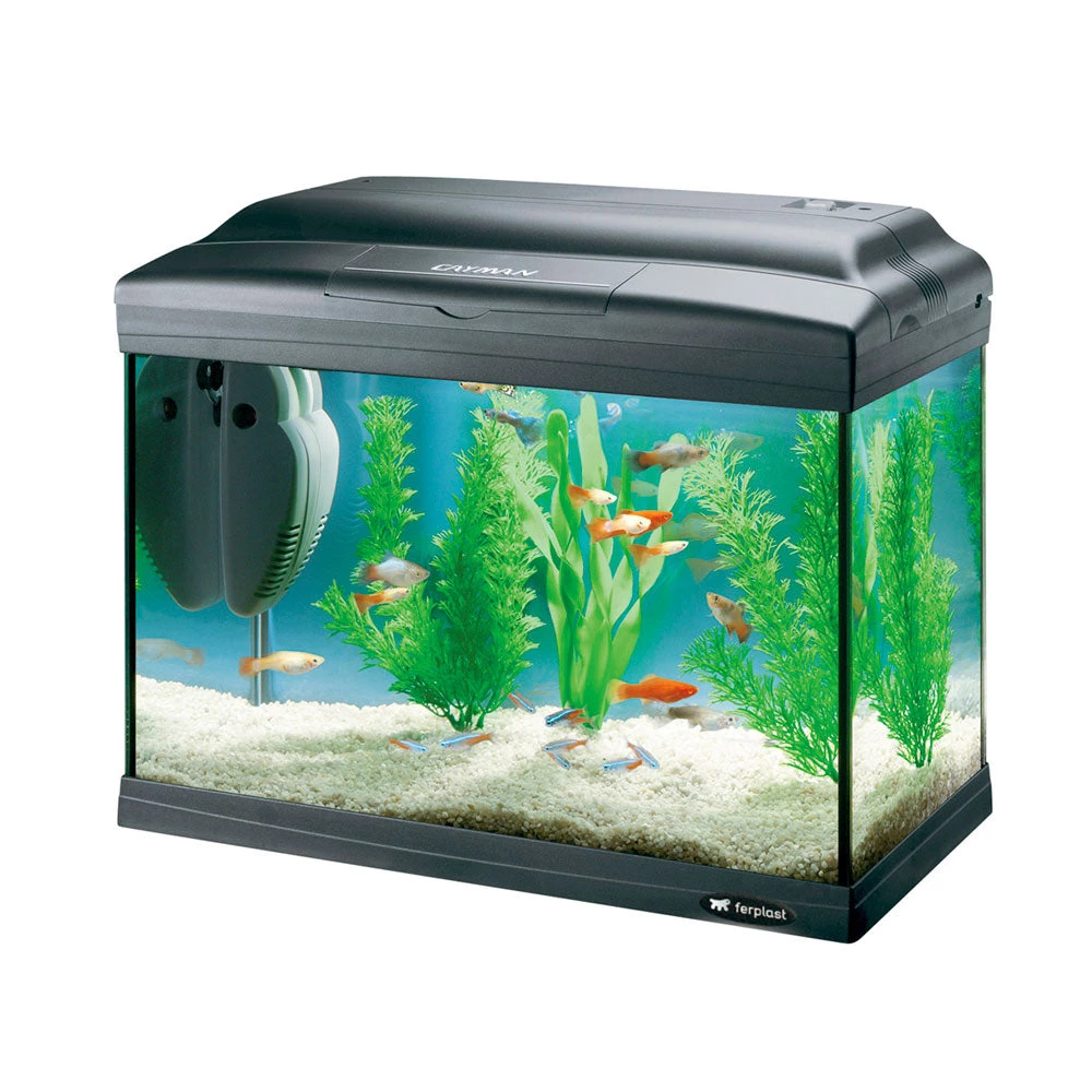 Cayman 40 Classic ist ein kleines, sehr einfach zu pflegendes Aquarium, speziell für junge Menschen, Anfänger oder Neulinge, die den Kontakt zur Welt der Aquarien ohne besondere Anstrengungen wollen. Das Becken hat einen soliden Kunststoff-Rahmen. Der Deckel hat eine kleine Frontklappe, die sehr nützlich ist, um z.B. die Fische zu füttern. An der Innenseite des Deckels ist eine Lampe T5 komplett mit Reflektor angebracht. Der Innenfilter Blucompact 01 kann dank der Saugnäpfe frei im Becken platziert werden.