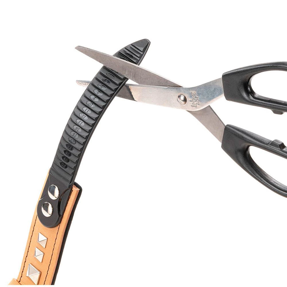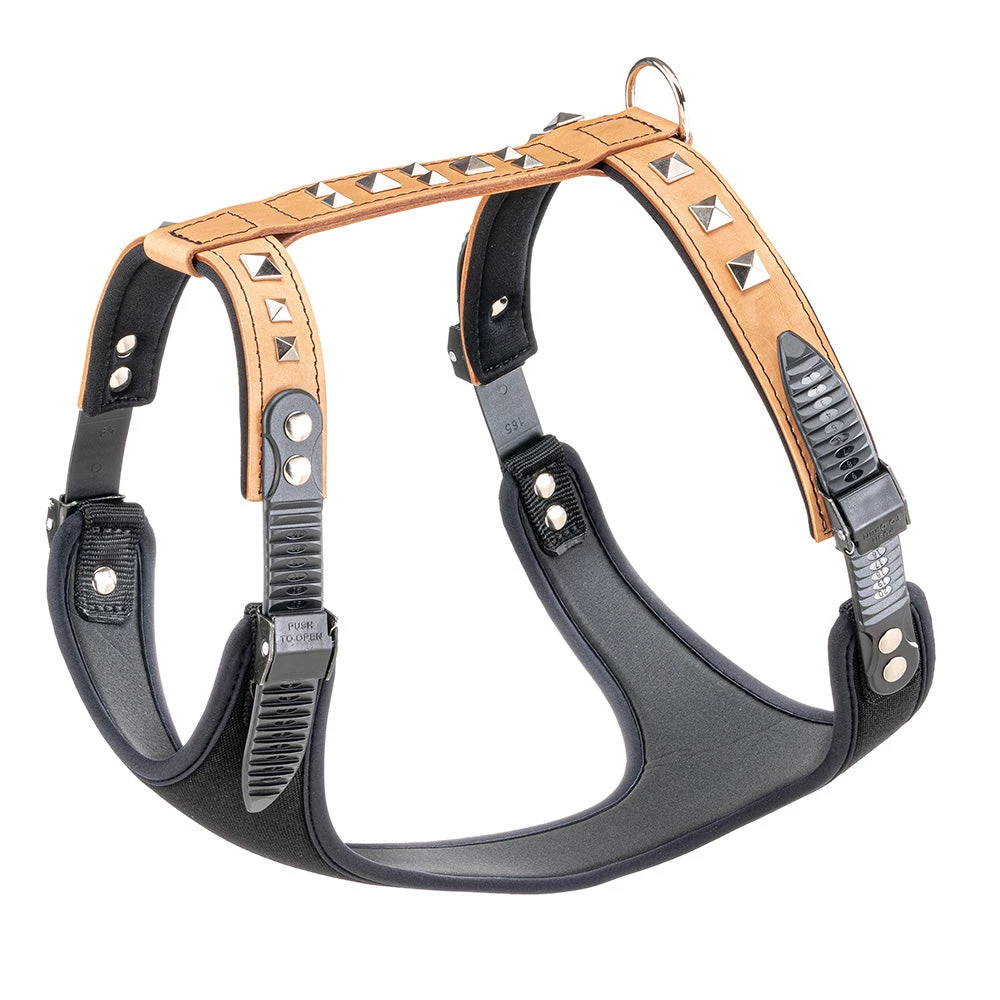 Diese Lederversion in beige hat einige kleine Metall-Applikationen in Form von Pyramiden und ist damit sehr originell und modisch. Ideal für Hunde, die sich von den anderen unterscheiden wollen!