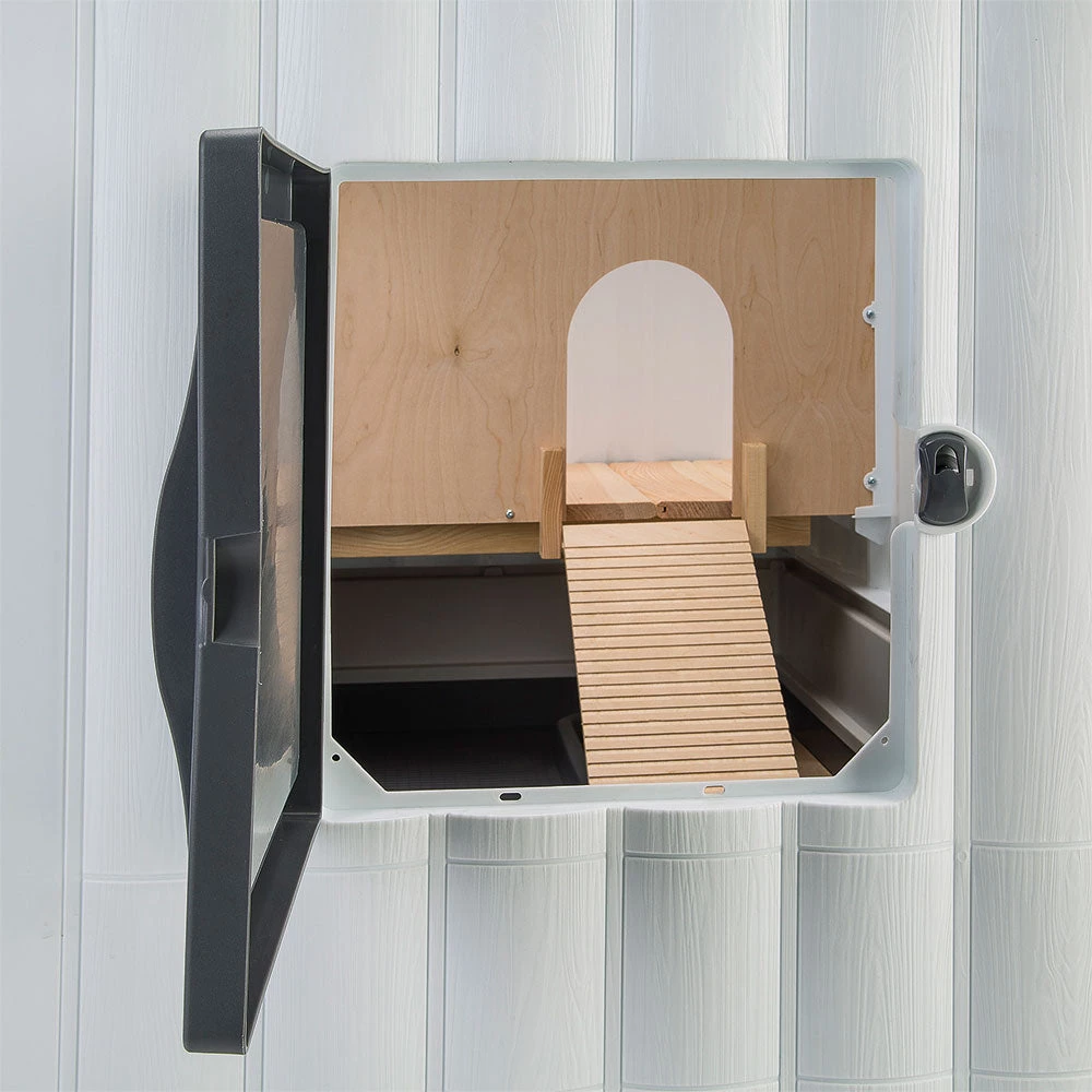 Das ebenfalls sparat erhältliche Dach Isolierungs Kit macht den Stall noch widerstandsfähiger gegen niedrige Temperaturen.