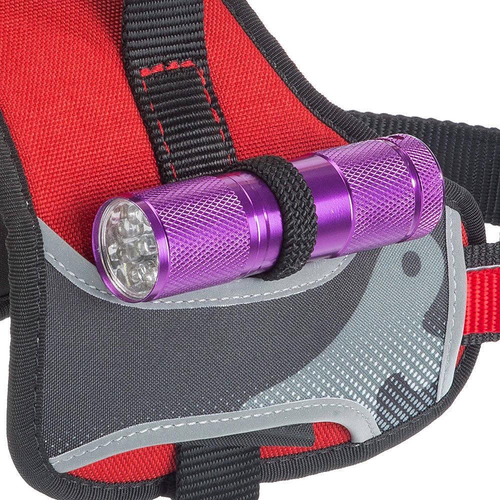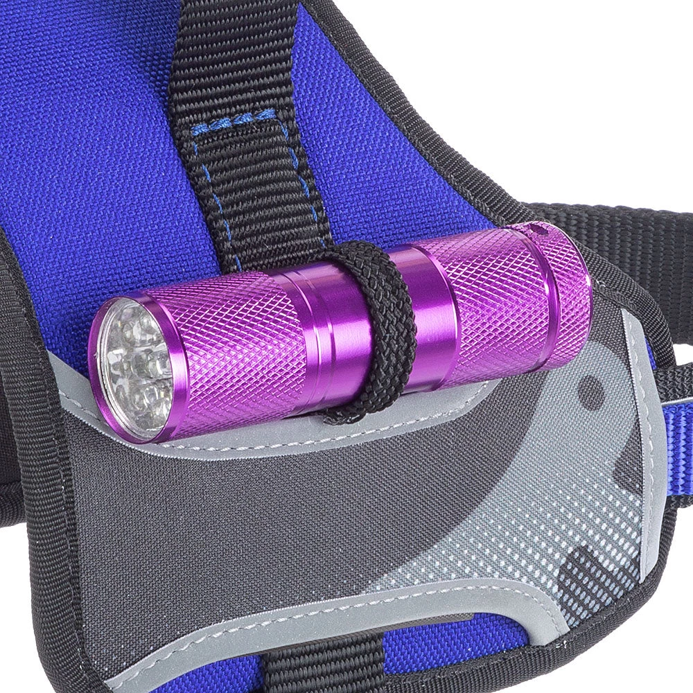Eine praktische elastische Schlaufe an der Seite ermöglicht das Einstecken nützlicher Gegenstände, wie z.B. einer Taschenlampe. Daher ist dies das perfekte Accessoire für Spaziergänge in den Bergen und für sportliche Aktivitäten wie Trekking und Jogging in Begleitung Ihres treuesten Freundes!