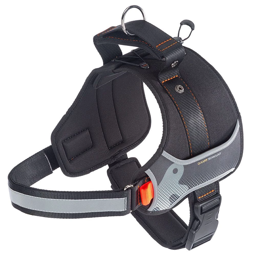 Schließlich passen sie Ihrem Haustier perfekt, da sie sich leicht an seinen Körper anpassen; für größere Hunde (Modelle Large und Extra Large) ist das innovative Quick Fit-Mikroverstellsystem im Lieferumfang enthalten, bei dem ein Gummizug die einfache und schnelle Anpassung des Geschirrs auf dem Rücken Ihres Hundes ermöglicht. Das spezielle ergonomische Design sorgt dafür, dass die Zuglast gleichmäßig über den Brustkorb Ihres Hundes verteilt wird, ohne seinen Nacken zu belasten oder Unbehagen zu verursachen.