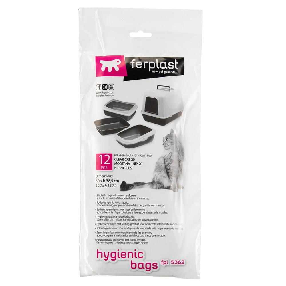 Hygienebeutel mit Zugband zum Sammeln schmutziger Einstreu. Passend für folgende Katzentoiletten: Nip 20, Nip 20 Plus, Bella, Prima und Moderna.