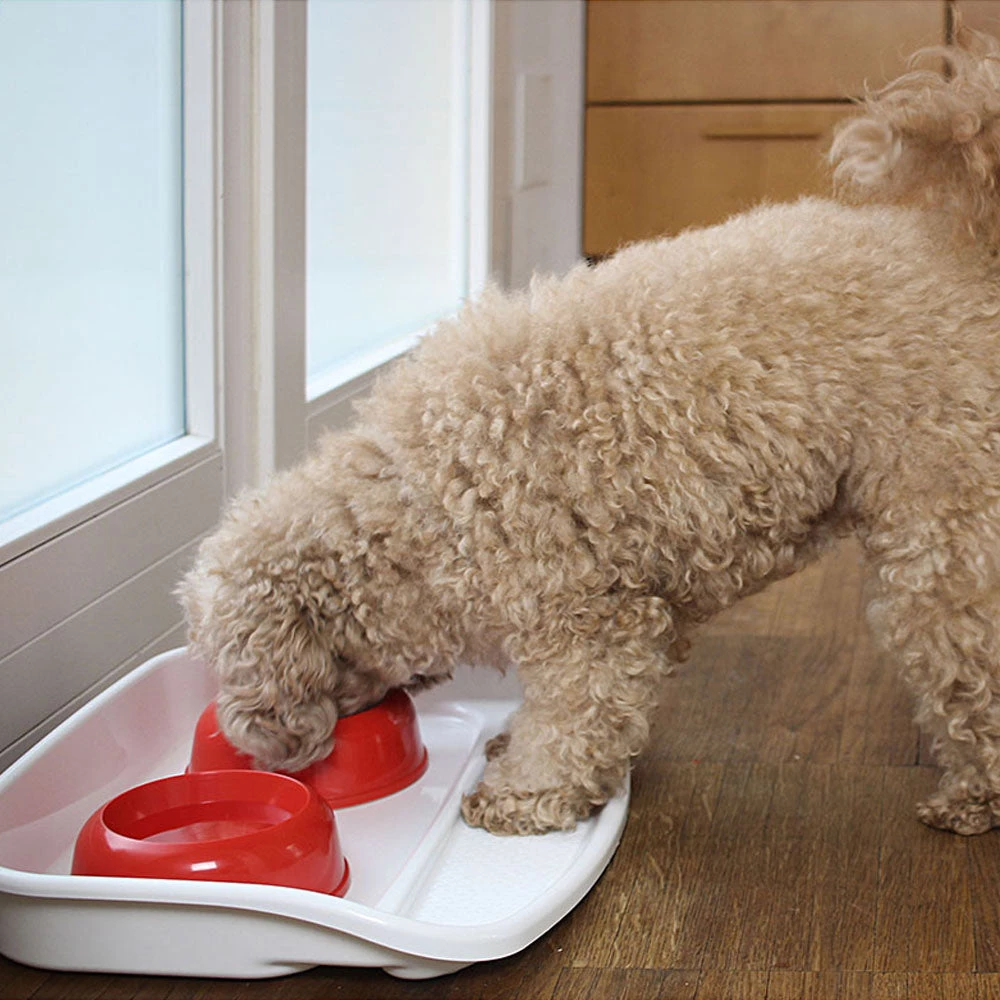 Lindo ist ein komplettes Tablett mit Kunststofffutternäpfen für Hunde und Katzen. Es ist einfach zu reinigen und sauber zu halten. Das Tablett verfügt über einen Sockel auf den Ihr vierbeiniger Freund seine Pfoten legen kann. Durch den hohen Seitenrand fällt kein Futter oder Wasser neben das Tablett. Das Kunststofftablett wird direkt mit 2 Futternäpfen geliefert (Party 4, Fassungsvermögen 0,3 Liter). Es ist sehr praktisch, da Sie Ihrem Freund gleichzeitig Wasser und Futter anbieten können. Dank der Anti-Rutsch-Stopper ist das Tablett stabil. Lindo kann einfach in jedem Raum Ihres Hauses plaziert werden und ist leicht zu verschieben. Machen Sie sich keine Sorgen um die Reinigung: Auf Grund der abnehmbaren Futternäpfe können Sie das Tablett in einem Wisch reinigen. Lindo ist das ideale Zubehör für kleine Hunde und für Katzen. Für große Hunde eignet sich Lindo Maxi mit den Näpfen Party 6, die ein Fassungsvermögen von 0,5 Liter haben. In verschiedenen Farben erhältlich.
