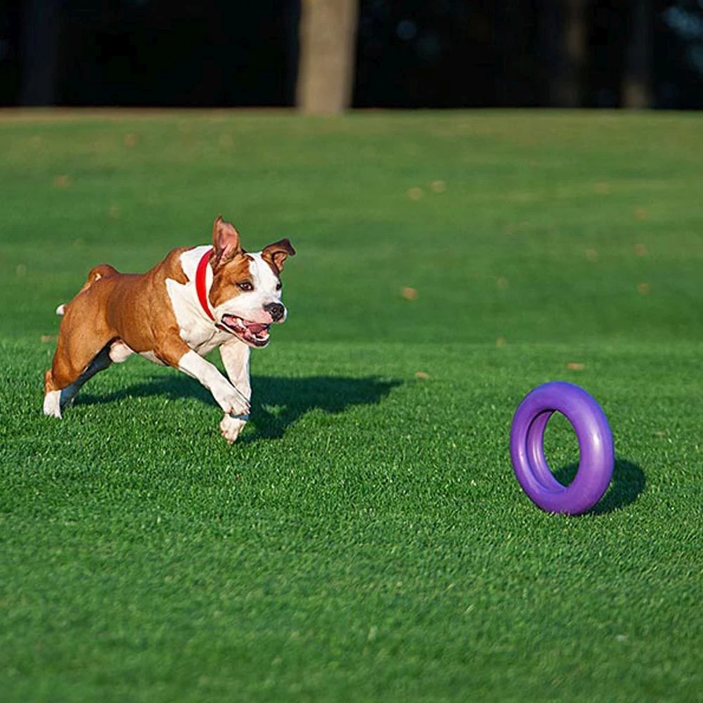 LAUFEN: Der Hund läuft dem geworfenen Puller-Ringen hinterher und bringt sie nacheinander zurück. Wenn der Hund den ersten Ring nicht loslassen möchte, zeigen Sie ihm einfach den zweiten. Die Übung bringt dem Hund bei, ein Objekt zurückzubringen, und trainiert Ausdauer, Geschwindigkeit und Beweglichkeit.