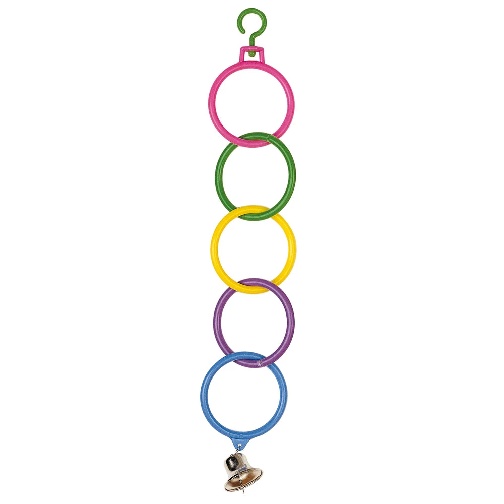 PA 4270 ist ein Spielzeug aus bunten Kunststoffringen und einer Glocke für Wellen- und Nymphensittiche. Es hat einen praktischen Haken, damit Sie es problemlos im Vogelheim befestigen können.