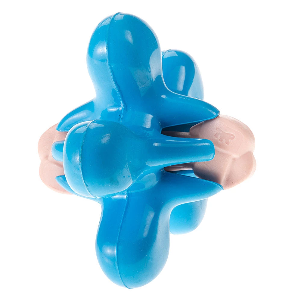 PA 6476 ist ein Gummispielzeug, mit dem Sie andere Kauspielzeuge oder die Lieblingsknochen Ihres Hundes aufnehmen können. So können Sie Ihren Freund belohnen und ihm Spaß bereiten! Dank der besonderen Form mit abgerundeten Spitzen, die einer Blume ähneln, regt das Spielzeug das Tier auch zum Kauen an, massiert sein Zahnfleisch und fördert die Zahnhygiene.