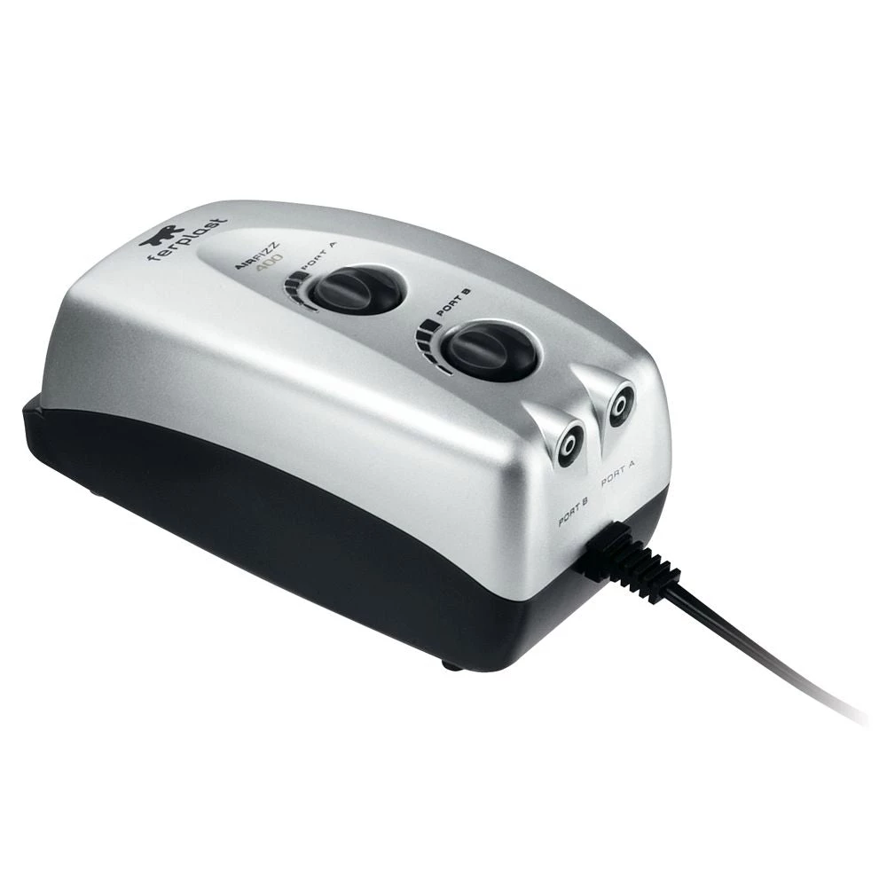 Erhältlich in vier Modellen, unterschiedlich in Wasserdurchfluss (von 50 bis 200 l / h) und Leistung (von 2 bis 5 W), haben die Airfizz Aquarienbelüfter eine oder zwei unabhängige Auslassdüsen mit einstellbarer Durchflussmenge: eine Düse in den kleineren Modellen Airfizz 50 und 100, zwei Düsen bei den Modellen Airfizz 200 und 400. Nützliche Gummifüße an der Basis wurden entwickelt, um Vibrationen zu reduzieren.